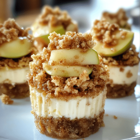 Apple Crisp Mini Cheesecakes are a delightful twist on the classic apple crisp, combined with the creamy decadence of cheesecake in a perfectly portable, mini format. These individual cheesecakes are topped with a spiced apple crisp topping that brings warmth and sweetness, making them an irresistible treat for fall or any time you’re craving a cozy dessert. With a buttery graham cracker crust, a smooth cheesecake filling, and a cinnamon-spiced apple topping, these mini cheesecakes bring the best of both worlds in every bite.