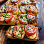 Caprese Garlic Bread is the perfect combination of crispy, garlicky bread topped with fresh tomatoes, creamy mozzarella, and fragrant basil. Inspired by the classic Italian Caprese salad, this dish takes things to the next level with a golden, toasty base infused with buttery garlic goodness. The bright, juicy tomatoes and rich, melty cheese make this an irresistible appetizer, side dish, or snack. It’s easy to make, incredibly flavorful, and guaranteed to impress!