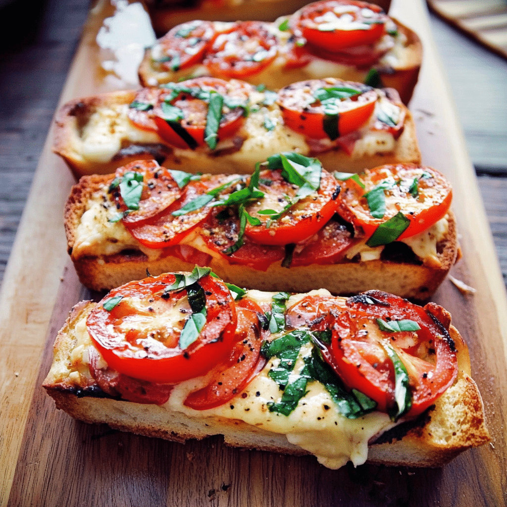 Caprese Garlic Bread is a simple yet elegant dish that combines the classic flavors of Caprese salad with warm, crispy garlic bread. With its golden, crunchy crust, gooey melted mozzarella, and the fresh taste of tomatoes and basil, every bite is a burst of deliciousness.