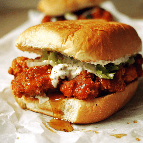 I remember the first time I made this sandwich for a casual family meal. The kitchen was filled with the delicious aroma of crispy chicken frying, and when we bit into it, the contrast of the spicy heat, tangy pickles, and the sweetness of the honey was a perfect harmony. What’s great about this sandwich is its versatility—you can adjust the heat level to suit your taste, add extra toppings like lettuce or cheese, or even serve it with a side of crispy fries or coleslaw. The crispy chicken and the sweet honey create a satisfying contrast that leaves you wanting more.
