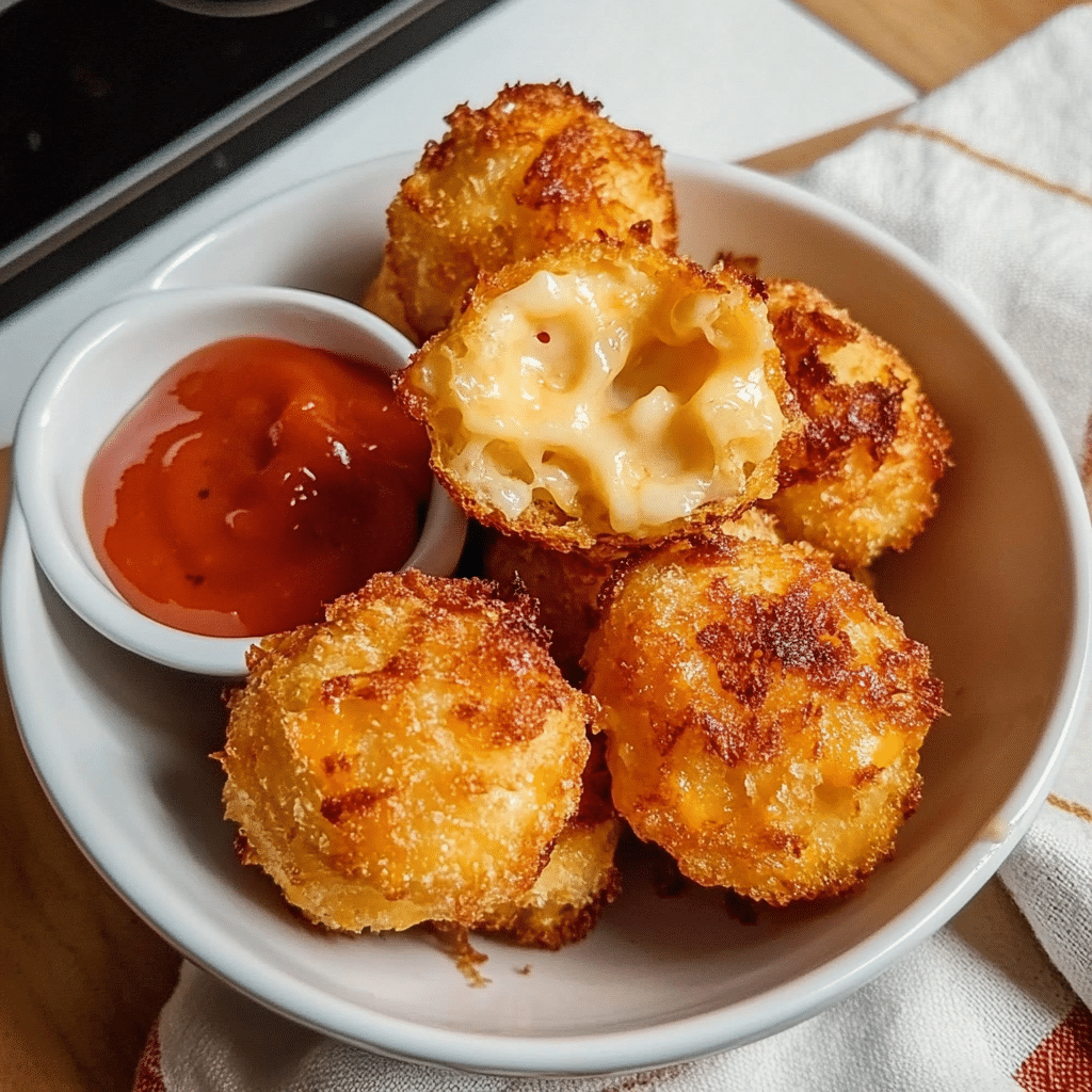 - Form the Bites: Once the mac and cheese mixture is chilled and firm, use your hands or a spoon to form small balls, about 1 to 1 ½ inches in diameter.