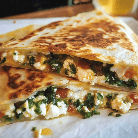 Spinach and Feta Quesadillas are a savory delight that brings together the vibrant flavors of fresh spinach and tangy feta, all wrapped in a crispy, golden tortilla. These quesadillas are as versatile as they are delicious, offering endless possibilities for customization. Whether you add extra veggies, spices, or your favorite cheese, they’re sure to satisfy.