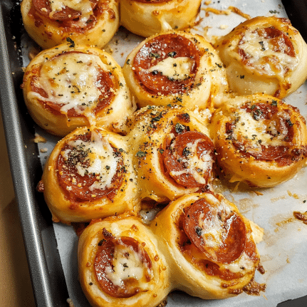 Turkey Pepperoni Pizza Rolls are a fun, crowd-pleasing snack that combines all the flavors of pizza in a portable, bite-sized form. Perfect for game day or any gathering, these rolls are made with turkey pepperoni for a lighter twist on the classic. The combination of melty cheese, savory turkey pepperoni, and pizza sauce wrapped in soft dough makes these rolls irresistible. Whether you’re feeding a crowd during the Super Bowl or enjoying a quick snack, Turkey Pepperoni Pizza Rolls will be the hit of the party!